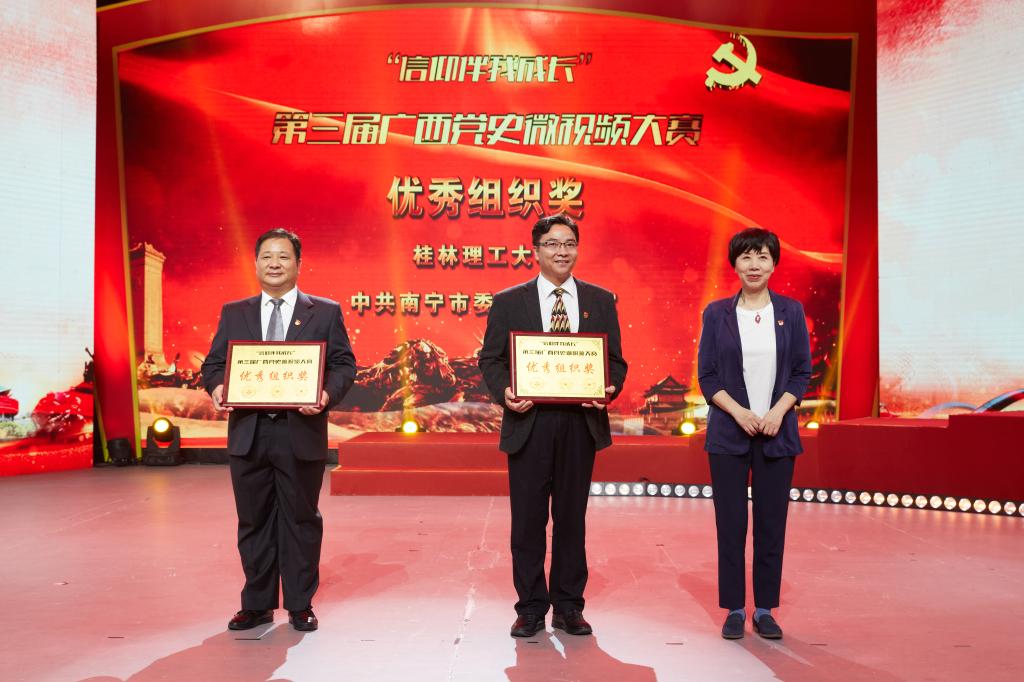 10月28日,“信仰伴我成长”第三届广西党史微视频大赛颁奖典礼在广西广播电视台举行。Beat365官网获本次微视频大赛“优秀组织奖”,作品组负责人陆平副教授代表学校赴南宁领奖。颁奖典礼由广西电视台、中央电视台客户端全程直播。