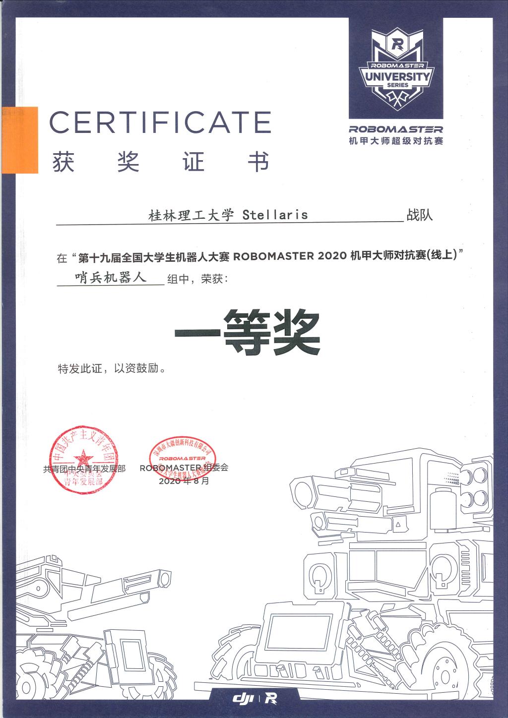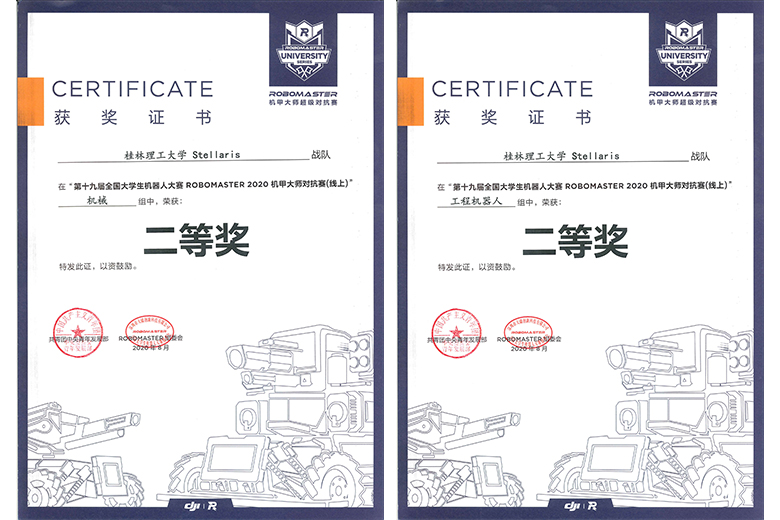 2020年8月18日,第十九届全国大学生机器人大赛RoboMaster 2020机甲大师赛完美落幕。在秦建华、张声岚、韦健毫、周卢婧、黄鹏等5位老师的指导下,由Beat365官网机械与控制工程学院机电17-2班滕金水同学带队,机械17-2班粟智威、机电17-2班覃俊杰等同学为主要成员的代表队Stellaris战队,经过激烈角逐,最终获得了第十九届全国大学生机器人大赛RoboMaster 2020机甲大师对抗赛哨兵机器人组一等奖,机械组、工程机器人组二等奖,步兵机器人组、英雄机器人组、嵌入式组三等奖以及团体三等奖的好成绩,创Beat365官网参赛以来最好成绩。