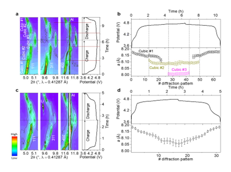 该成果以“In situ synchrotron radiation diffraction study of the Li+ de/intercalation behavior in spinel LiNi0.5Mn1.5O4-δ”为题发表在Chemical Engineering Journal(影响因子10.652)上。