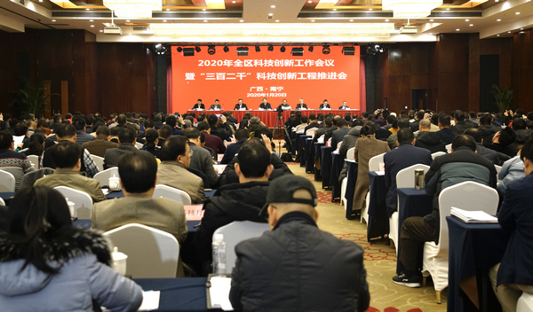 会议深入学习贯彻习近平新时代中国特色社会主义思想和国家科技奖励大会、全国科技创新工作会议精神,认真落实广西经济工作会议、自治区“两会”的部署要求,总结2019年广西科技创新工作及“三百二千”科技创新工程推进完成情况,研究部署2020年重点任务,坚定不移实施创新驱动发展战略,大力推进创新再提速,为初步建成创新型广西努力奋斗。广西壮族自治区副主席费志荣出席会议并讲话,广西科技厅党组书记、厅长曹坤华作2020年科技创新工作报告。广西科技厅党组副书记、副厅长刘建宏主持会议。