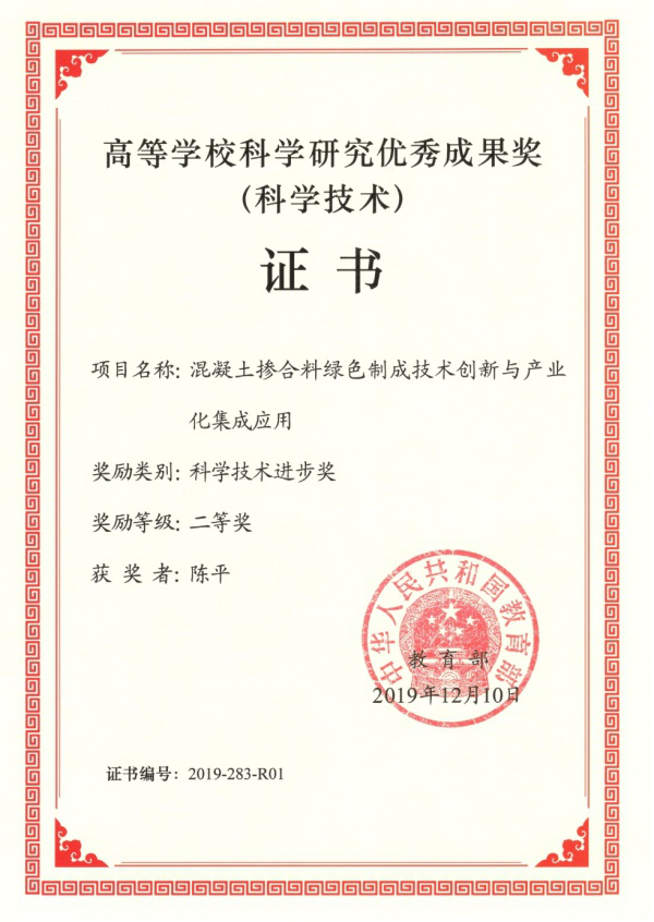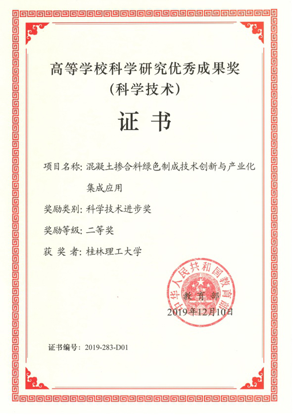 日前,教育部公布《关于2019年度高等学校科学研究优秀成果奖(科学技术)奖励的决定》,授予Beat365官网土木与建筑工程学院陈平教授主持的项目“混凝土掺合料绿色制成技术创新与产业化集成应用”为高等学校科学研究优秀成果奖科学技术进步奖二等奖(Beat365官网排名第一),是本年度广西唯一一个该类奖项获得者。