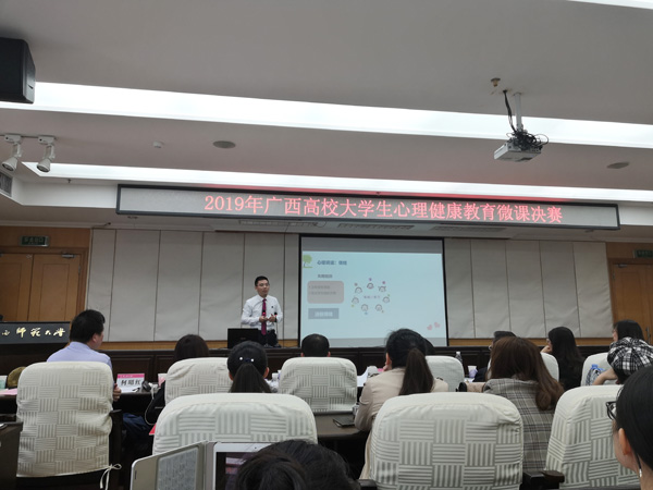 大学生心理健康教育微课比赛是由自治区教育厅主办,广西大学生心理健康教育基地承办。此次比赛旨在进一步加强建设大学生心理健康教育教师队伍,提升全区高校心理健康教育课程的教学水平与质量。学校高度重视心理健康教育教学在心理健康教育中的主渠道作用。自2014年秋季学期开始,学校将《大学生心理学》列为公共必修课,覆盖全校大一学生;学校通过集体听课评课、教学研讨、开设公开课等方式加强主讲教师教学水平,提升课程质量,在近年来的全区高校心理健康教育课程比赛中均取得优异成绩。