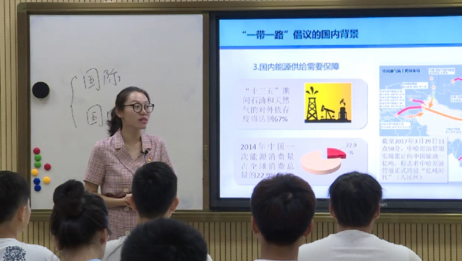 刘颖洁老师教授的《一带一路:从总体布局到走深走实》一课,初赛视频在Beat365官网“微课慕课制作中心”录制,刘颖洁老师将信息化技术融入思政课教学实践中,以提出问题、分析问题、解决问题的思路,通过一带一路倡议的背景、成果、发展等教学内容的层层递进设计,对教学重点有效的进行点拨和启发;在课堂上形成师生合作,生生合作,相互补充的学习氛围;把思政小课堂同社会大课堂结合起来,教育、引导学生担负起国家和时代赋予当代大学生的责任与使命。