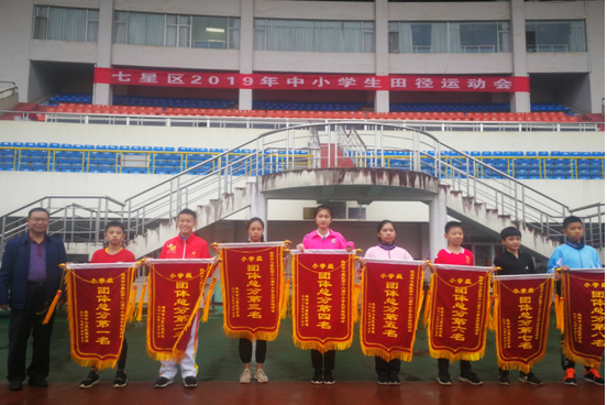 10月16日至17日,七星区2019年中小学生田径运动会在桂林市体育中心田径场拉开战幕,辖区内的22所中小学运动员代表参加角逐,附属小学田径队队员们经过奋力拼搏,获得小学组团体总分第二名的好成绩。