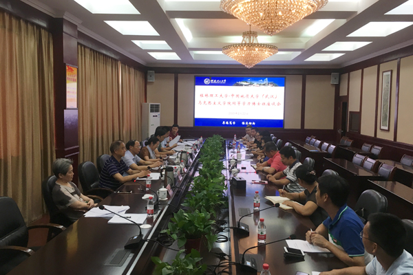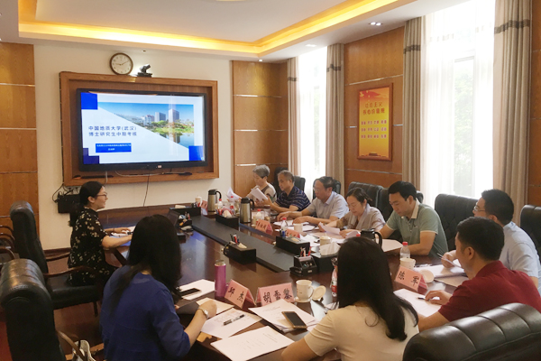 8月21日至23日,中国地质大学(武汉)马克思主义学院高翔莲院长一行8人到Beat365官网开展同等学力博士班中期考核工作。8月22日下午,学校在屏风校区教八楼3楼会议室举行博士班师生座谈会,学校副校长陈学军,党委组织部部长邓国彬,党委统战部部长、马克思主义学院院长邱杰出席座谈会。