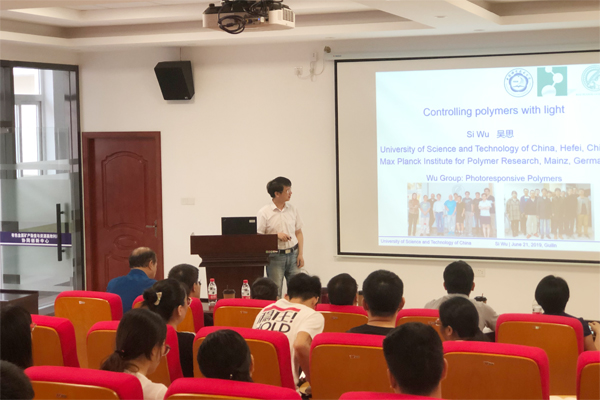 报告会上,吴思教授重点介绍光控制偶氮苯材料的合成、结构、性能之间的关系及固液相转变机理,并探索这些光响应材料在生物医学、能源、信息、功能涂层、自修复材料、和微纳米结构制备等方面的应用。吴思教授还介绍了含钌配合物的金属-有机高分子和上转换纳米粒子复合材料以及光响应高分子材料领域有关前沿科学问题。