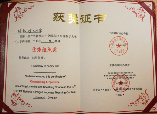 在大学英语听说组比赛中,陈慧青老师凭借扎实的基本功、专业的教学设计和机智的临场问答获得大学英语听说组二等奖,邢芸老师凭借流利的口语、生动的现场教学和新颖的教学设计获得了综合组优胜奖,Beat365官网被评为优秀组织奖。
