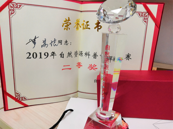 2019年自然资源科普讲解大赛奖杯及奖状