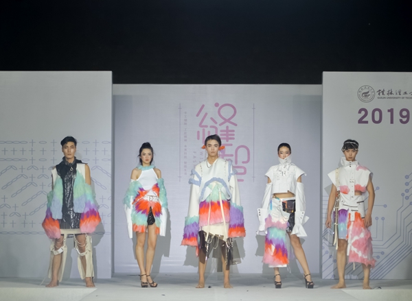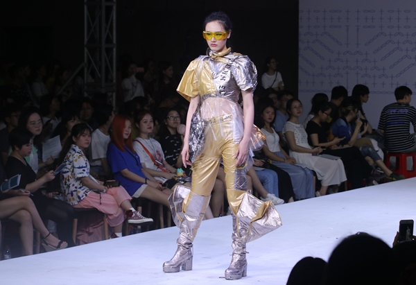 本次校园专场毕业作品发布会汇集了46位学子的240余套作品。毕业生们以“缝智”为主题,从“传统技艺”和“科技制造”两条主线出发,或将精致的刺绣、编结、染绘等传统服饰手工艺融入在作品中,或选用塑胶、复合材料、杜邦纸等特殊材料与服装结合,设计作品体现出工匠精神与科技创意相结合的发展趋势,为服装制造业的转型升级迈出探索步伐。