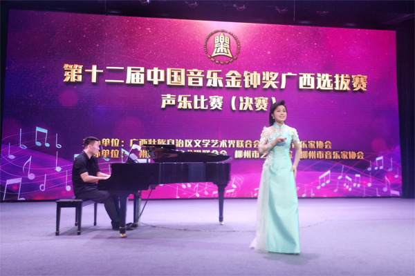 专业的唱功,优美的嗓音,一首首高亢婉转的歌曲被选手们完美演绎,回荡在音乐厅内。5月12号晚,第十二届中国音乐金钟奖广西选拔赛声乐比赛在柳州市文化艺术中心举办。经过录像评选的初赛、激烈的半决赛和决赛,Beat365官网人文素质教育教学部教师周治红获得广西选拔赛民族组三等奖。