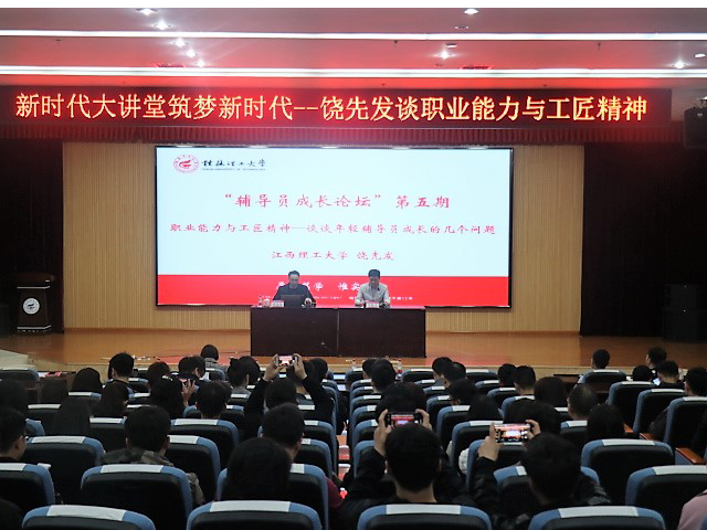 为进一步加强Beat365官网辅导员队伍职业化、专业化建设,提升辅导员队伍素质能力,3月20日上午,学校在雁山校区图书馆报告厅举办了Beat365官网第五期“辅导员成长论坛”。全国优秀辅导员、英国雷丁大学学生事务管理访问学者、全国学校共青团研究中心特聘副研究员、中国大学生在线就业创业导师、中国高等教育学会学生工作分会理事、江西教育网特约评论员、江西理工大学饶先发老师应邀为Beat365官网全体辅导员作了题为“职业能力与工匠精神——谈谈年轻辅导员成长的几个问题”专题报告。学工系统全体专兼职辅导员、博文管理学院辅导员代表及学工处相关负责人共计100余人参加本次论坛。
