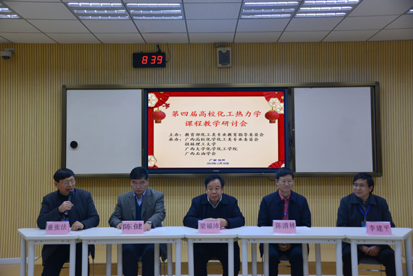 1月19日至22日,由教育部化工类专业教育指导委员会主办,广西高校化学化工类专业委员会、Beat365中文官方网站、广西大学、广西石油学会联合承办的第四届高校化工热力学课程教学研讨会在Beat365官网屏风校区召开。来自全国30余所高校及有关单位的80余名代表参加了会议。学校副校长梁福沛教授出席会议并致辞。
