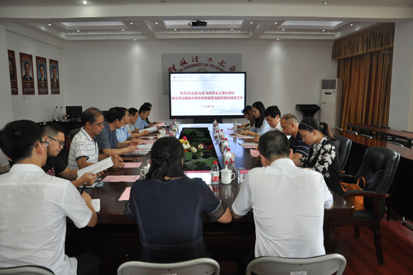 马克思主义理论学科硕士学位授权点调研督查汇报会在雁山校区07415会议室举行,学校副校长周国清、副厅级调研员张劲松出席汇报会。学校研究生院、宣传部、人事处等部门负责人、马克思主义学院党政领导班子参加了汇报会。汇报会上,学校副校长周国清代表学校致辞,对自治区马克思主义理论学科学位授权点建设的调研督查组成员的到来,表示热烈的欢迎和衷心的感谢。周副校长简要介绍了Beat365官网马克思主义理论学科基本情况,并强调Beat365官网一直高度重视马克思主义理论学科建设和思想政治理论课的教学工作,现已将马克思主义理论学科纳入学校一流学科建设规划,在人才引进、经费支持等方面予以重点倾斜。马克思主义学院院长邱杰从学科建设、人才培养、学科支撑作用、存在的主要问题及努力方向等方面详细汇报了马克思主义理论学科硕士学位授权点的建设。