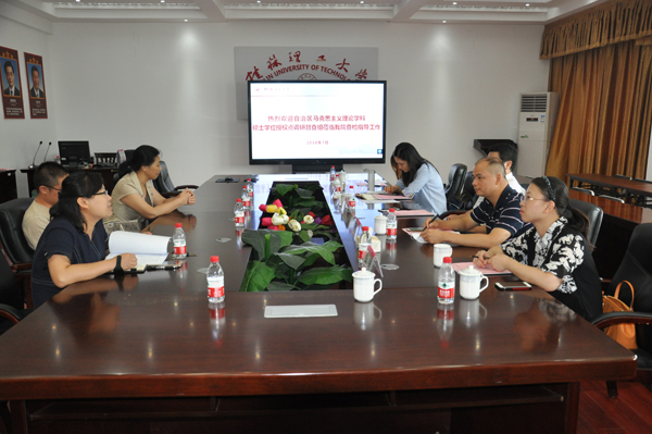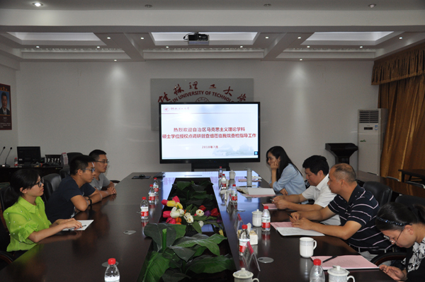 7月3日下午,根据自治区教育厅的部署安排,自治区马克思主义理论学科硕士学位授权点调研督查组到Beat365官网开展马克思主义理论学科硕士学位授权点建设工作专项督查。以广西师范学院马克思主义学院院长曾令辉为组长,广西民族大学研究生院副院长黄焕汉、广西壮族自治区教育厅思政处张莉、广西壮族自治区教育厅学位办居玛丽、梁夏为组员的调研督查组一行,通过听取汇报、召开座谈会、查阅资料等形式对Beat365官网马克思主义理论学科硕士学位授权点建设工作进行督导调研。