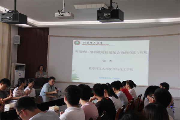 6月17日,应Beat365官网邀请,北京理工大学张杰教授在雁山校区12217多功能室作了题为“刺激响应型联吡啶鎓基配合物的构筑与应用”的学术报告。Beat365官网相关专业师生聆听了此次报告。