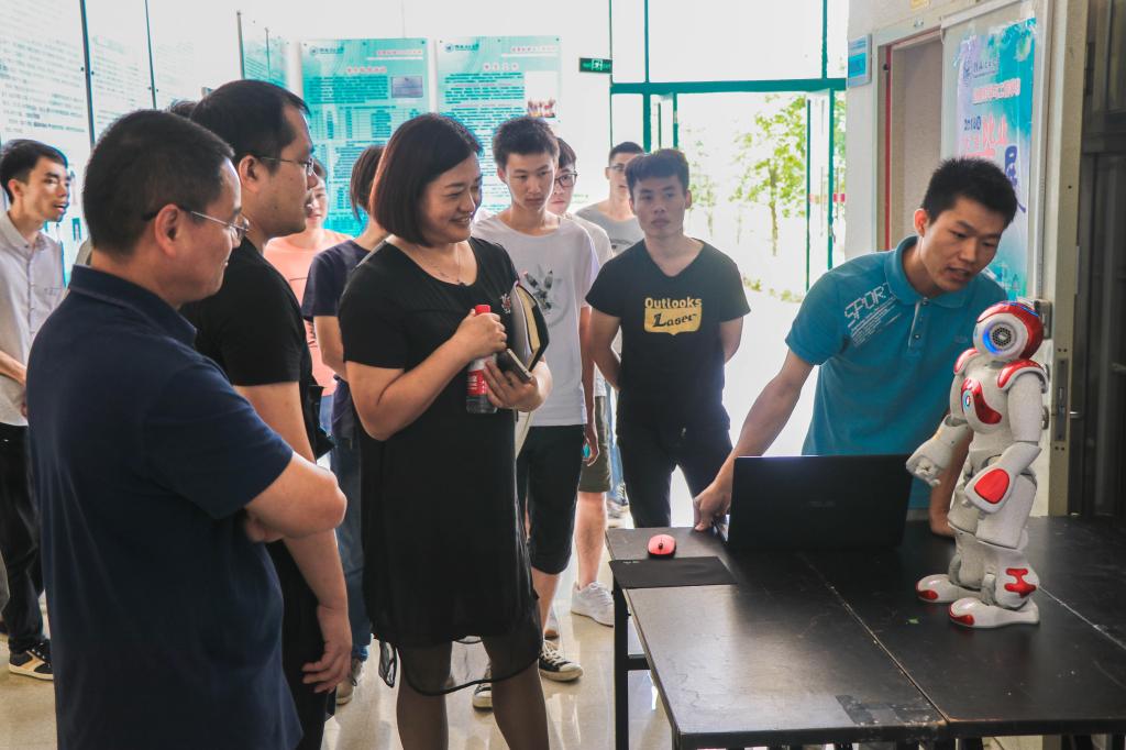 为进一步贯彻落实学校“三全”育人示范校建设要求,进一步激发学生学习兴趣,信息科学与工程学院2018届优秀毕业设计作品展于6月14日在雁山校区立信楼一楼大厅举办。此次共展出了27件优秀毕业设计作品,作品范围涵盖了算法设计、机器人、手机APP、物联网系统、教学管理、智慧旅游、工业过程监控等十多领域。学校王玫副校长、梁福沛副校长及教务处、学工处、发监中心、校团委等单位负责人及1000多名师生参观了本次展览。