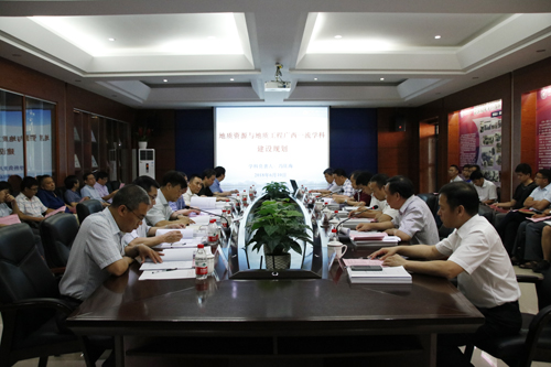 以中国地质大学(武汉)唐辉明教授为组长的7人专家组考察了广西隐伏金属矿产勘查重点实验室和地质博物馆,并仔细审阅相关资料,听取学科负责人冯佐海教授关于学科建设情况的汇报,对《地质资源与地质工程一流学科建设任务书》进行了论证。