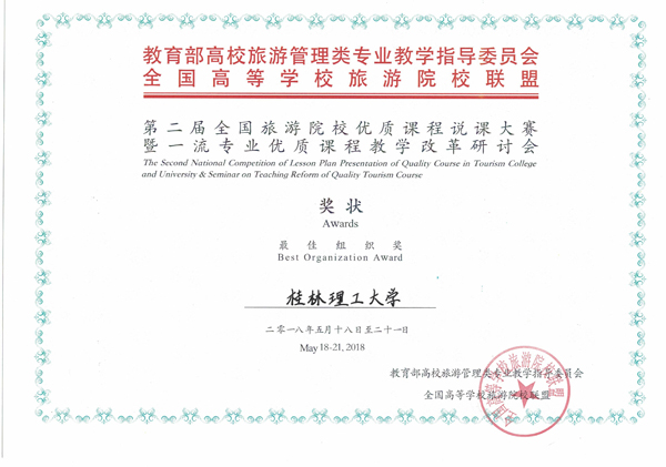 据悉,有来自全国旅游院校的136门课程、180名教师参加了本次大赛。大赛设旅游管理组、酒店管理组、会展经济与管理组,共6个组进行比赛,各组分别决出一等奖1个,二等奖2个,三等奖3个。这次比赛,是Beat365官网第一次组织参加的全国旅游管理类院校优质课程大赛,体现了Beat365官网专业教师良好的教学素质和教学风貌,参赛教师也在比赛中获得了交流和学习,提升了教育教学水平,同时也为旅游管理、酒店管理两个专业将要进行的国际认证打下了良好基础。