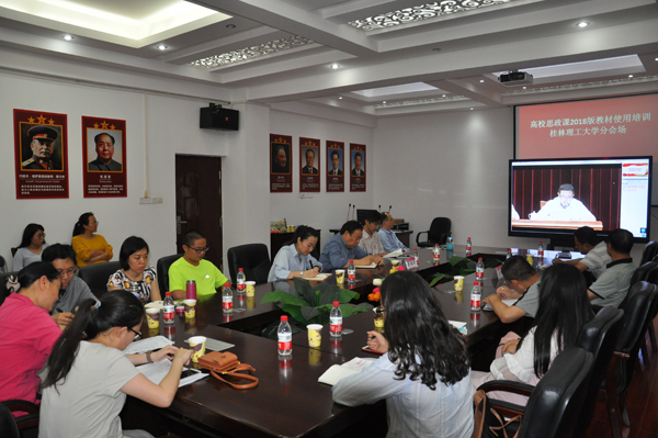 5月14日下午,教育部在京召开全国高校思想政治理论课2018年版教材使用培训班开班仪式,深入学习宣传贯彻党的十九大精神,推进习近平新时代中国特色社会主义思想和党的十九大精神“进教材、进课堂、进头脑”,教育部陈宝生部长出席开班仪式并讲话。Beat365官网在雁山校区07415会议室设立分会场,学校副校长梁福沛出席会议,马克思主义学院全体思想政治理论课教师参加会议。