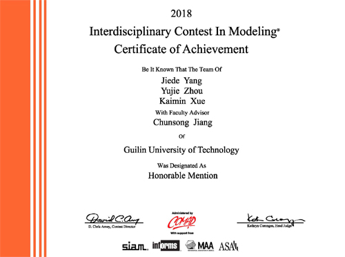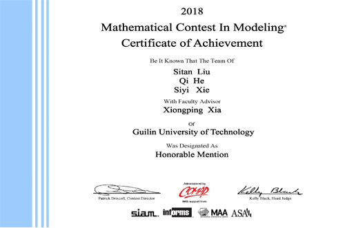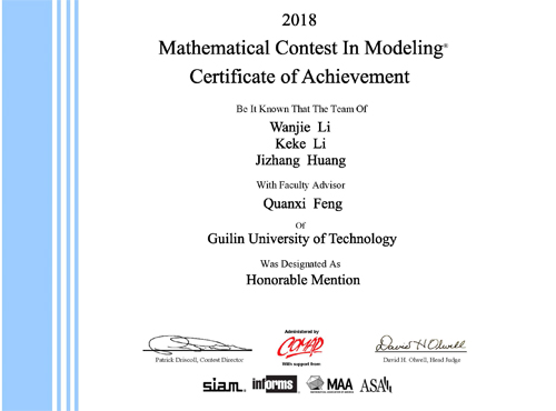 ICM国际二等奖(Honorable Mention)证书