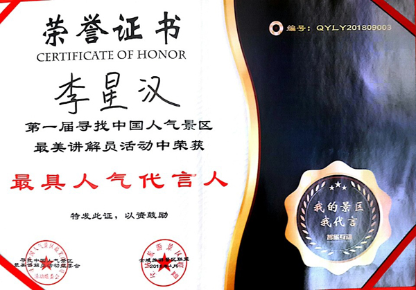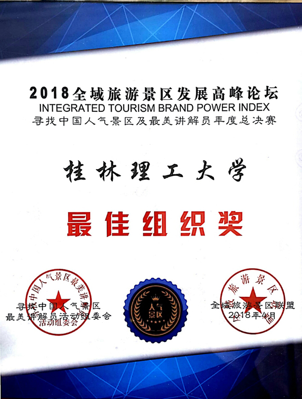 据悉,在文化和旅游部、中国旅游景区协会的关心下,“我的景区我代言——寻找中国人气景区及最美讲解员活动”以“展人气景区,寻最美讲解”为主题口号,通过网友投票参与、讲解员推介代言、专家评委现场评选,从而评选出“中国人气景区”和“最美讲解员”。此次比赛自2017年4月启动以来,中国七大地区(华东、华中、华南、华北、西南、西北、东北)累计3000多家4A级以上景区报名参与,1000多位讲解员参与各赛区现场角逐,共计百家人气景区和讲解员成功入围并参与了年度总决赛。此次活动达到了以赛促学、以学促用的目的,充分检验了学校的教学成果,也为后续比赛提供了宝贵的经验。