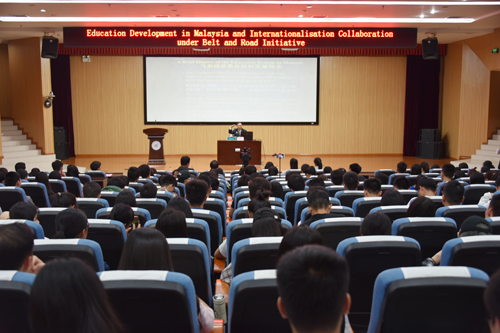 4月24日下午,应周国清副校长邀请,马来西亚拉曼大学校长、亚洲工程与技术学会主席、马来西亚科学院高级院士蔡贤德,在雁山校区图书馆报告厅作了题为“马来西亚教育体制、发展及‘一帶一路’的国际化概况”的报告,报告会由周国清副校长主持,300余名师生到场聆听了报告。