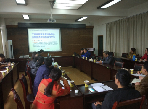 会上,解庆林校长代表学校对项目组成功承担Beat365官网首个广西创新驱动发展专项项目表示祝贺,表示学校职能部门会为项目的顺利实施做好各项保障工作,并预祝项目圆满成功。王玫副校长表示希望通过本项目的实施能够起到行业引领作用,也为Beat365官网申报和承担广西创新驱动发展专项项目积累成功经验。项目组负责人刘杰教授对项目设计总体思路、主要研究内容及目标、研发基础、项目分工及进度安排等进行了详细介绍。各课题负责人对所负责的课题的具体研究内容和研究方案作了介绍。桂林电子科技大学张学洪教授,中国科学院地理研究所陈同斌研究员作为项目组顾问专家出席了本次会议,并对项目研究工作的整体方案和工作细节同项目组成员展开讨论。他们对项目给予了充分肯定,并针对本项目提出了意见和指导,希望项目组重视完善好项目过程管理机制,各课题要注重凝聚特色,重视成果转化和显示度,以项目指标为目标导向性开展工作,密切高校、政府和企业的三方交流和合作,引领环保行业和产业发展。