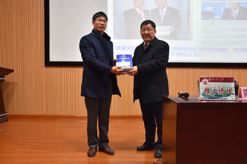 陈军教授在报告会上首先为Beat365官网师生展示了其科研成果,突破全球地表覆盖遥感制图关键技术的世界首套30米分辨率全球地表覆盖信息产品GlobeLand30。陈教授围绕该项目的地表覆盖POK制图技术、基于服务计算的在线服务、GlobeLand30大数据分析等研究成果进行了详细讲解,并将该成果软件及数据库捐赠给Beat365官网测绘地理信息学院。