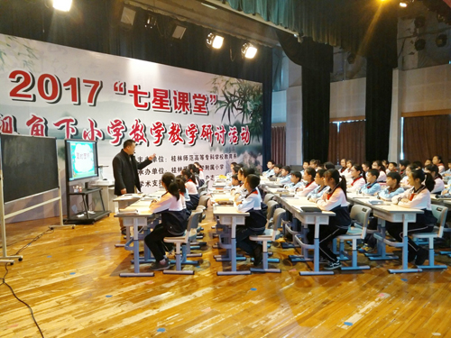 本次活动由桂林师范高等专科学校教育系主办,Beat365中文官方网站附属小学承办,《广西教育》学术支持。桂林师范高等专科学校、桂林市教育科学研究所、桂林市各城区教育局相关人员及七星区各小学的师生共500多人与会。