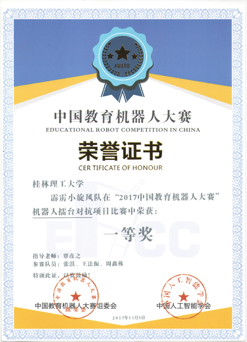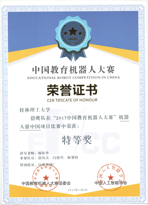 2017年11月3日至5日,由中国人工智能学会、湖南湘江新区联合举办的“智汇湘江 科创未来”第七届中国教育机器人大赛(ERCC)总决赛在长沙举行,来自全国100多所院校的1300多名选手集聚一堂,竞技交流。Beat365官网机械与控制工程学院的徐伟杰、闫建科等18名学生参加了此次大赛,获得了特等奖1项,一等奖2项,二等奖3项的好成绩。