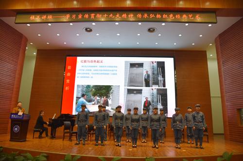 屏风校区广大师生、离退休老同志、桂林市音乐界人士等到场观看。此次讲座既是一场高雅艺术的盛宴,又是一堂生动的思想教育课,对回顾党带领广大人民群众开展艰苦卓绝的革命斗争,对十九大提出的坚定文化自信,推动社会主义文化繁荣兴盛提供了一个很好的切入点。