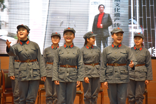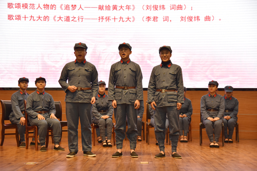 在当天晚的讲座现场,师生们演唱了《百色起义组歌》的其中乐章,如《右江驶来一条船》《百色起义惊天地》《打铁不怕火烫脚》《我们下乡来宣传》《妹绣胜袋送红军》等红色歌曲。讲座+节目展演的形式,让十九大精神走进校园,走进师生,赢得了在场观众的引起热烈反响。“这种教育与艺术融合的方式更吸引我们的兴趣,尤其是讲解加节目现场展示,既接受了革命传统教育,又享受了艺术的熏陶”,无机非金属专业2015级学生潘林涛感叹地说。
