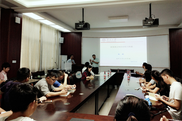 5月21日上午,应Beat365官网邀请,南开大学化学学院教授、博士生导师赵斌教授到Beat365官网讲学,在雁山校区12217室作了题为“新颖簇合物的结构与功能”的学术报告。Beat365官网相关专业的师生聆听了报告。