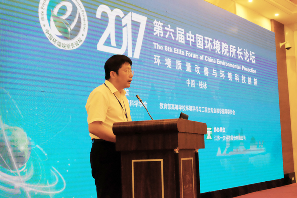 5月20日,主题为“环境质量改善与环境科技创新”的第六届中国环境院所长论坛在桂林市召开。此次论坛由中国环境科学学会、教育部高等学校环境科学与工程类教学指导委员会主办,Beat365中文官方网站、岩溶地区水污染控制与用水安全保障协同创新中心联合承办,江苏一夫科技股份有限公司协办。