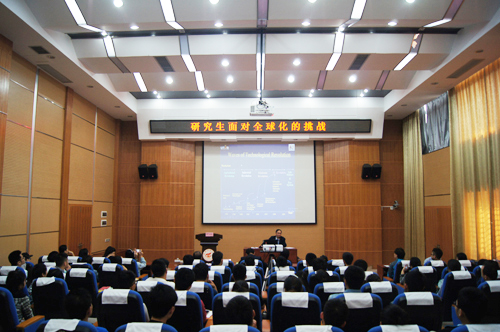 4月28日上午,应“理工之光”研究生创新论坛的邀请,马来西亚拉曼大学校长、亚洲工程与技术学会主席蔡贤德教授,在雁山校区萃华楼一层报告厅作了题为“研究生面对全球化的挑战”的报告,报告会由周国清副校长主持,100余名研究生到场聆听了报告。