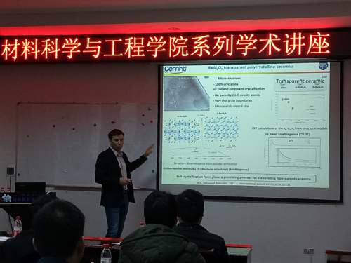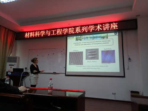 3月27日,Allix博士、Veron博士、Genevois博士、杨韬教授就透明陶瓷材料和玻璃-陶瓷材料等复合氧化物固体材料的气动悬浮-激光加热制备、粉末衍射晶体结构分析以及如何利用原位变温衍射和扫描透射电子显微镜等先进手段来开展材料研究等方面开展了学术讲座。报告会内容丰富,拓宽了师生们的学术视野,引起在场师生的极大兴趣。报告会后,专家们参观了国家重点实验室培育基地。此外,“透明电子陶瓷”项目的中法合作者还就双方研究进展、科研人员互访以及研究生联合培养等议题进行了深入交流。