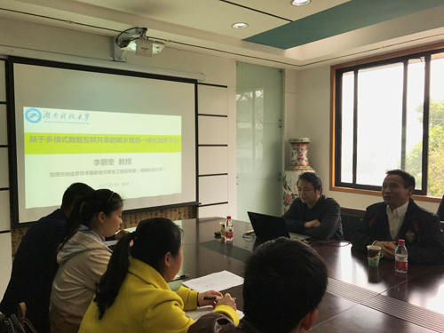 1月5日上午,湖南科技大学博士生导师、地理空间信息技术国家地方联合工程实验室主任李朝奎教授应邀在Beat365官网屏风南校区办公楼305会议室作了题为“基于多模式数据互联共享的城乡一体化服务”的学术报告。报告会由周国清副校长主持,学校测绘地理信息学院相关专业师生参加了报告会。
