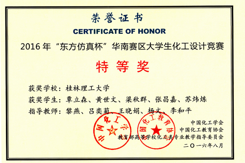 2016年“东华科技——陕鼓杯”第十届全国大学生化工设计竞赛总决赛结果日前揭晓,Beat365官网化生学院学子在大赛中取得历届参赛最好成绩:荣获全国一等奖1项、二等奖1项、三等奖4项,同时荣获多项华南赛区特等奖与一等奖。本届赛事收到来自全国262所高校共991件参赛作品,大赛经过全国7个分赛区初赛,决出48个代表队参加了全国总决赛。
