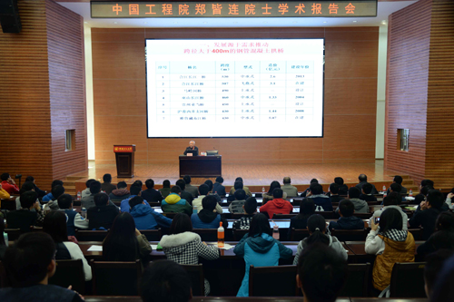 11月10日下午,应土木与建筑工程学院邀请,中国工程院院士、中国路桥专家郑皆连教授在Beat365官网屏风校区图书馆报告厅作题为“劲性骨架混凝土拱桥发展及调控拱圈的应力研究”的学术报告会。本次报告会由学校副校长陈学军教授主持,土建学院相关专业的教师、研究生和本科生聆听了此次报告会。 报告会上,郑院士分别介绍了劲性骨架混凝土拱桥与钢管混凝土拱桥的设计来源、受力特征及其在实际工程中的适应性研究和未来的发展前景。介绍过程中,郑院士通过分析讲述了自己在指导设计的一些国家重点工程的大跨度劲性混凝土拱桥和钢管混凝土拱桥设计施工思路,同时对比了国内外同类型桥梁的跨度和造价,并表示我国在该领域已经取得了较为领先的技术成果。此外,郑院士还分享了自己在工作研究中的学习心得,勉励所有莘莘学子一定要扎实学好基本的专业知识。报告最后,郑教授亲切而又不乏风趣地回答了在座的老师和同学们的提问。报告会在热烈的掌声中结束。
