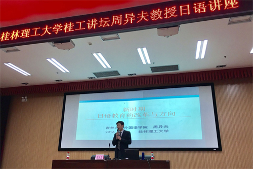 中国日语教学研究会会长周异夫教授做客桂工讲坛
