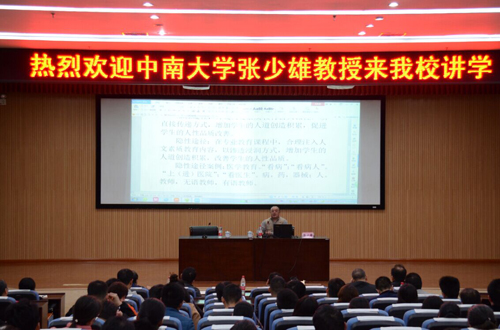 11月2日下午,中南大学张少雄教授应邀在雁山校区图书馆报告厅作了题为“理工科大学人文素质教育”的学术报告。梁福沛副校长出席了此次报告会。报告会由发展规划与教学质量监控中心主任罗盛锋主持,各学院分管教学副院长、各教研室主任、全体学工干部、文学教研室与公共艺术教研室全体教师、教务处及发展规划与教学质量监控中心的全体工作人员聆听了此次报告会。 张教授在报告中围绕“如何理解人文素质教育、如何开展人文素质教育、如何协调人文素质教育与科学素质教育”三个问题展开了精彩的论述。他指出人文素质教育是使学生具备人文知识、理解人文思想、掌握人文方法、遵循人文精神的教育,这种教育可以通过显性和隐性教育两种途径开展,在专业教育课程中,合理注入人文素质教育内容。针对当今教育语境存在的科学与人文不相适应的现象,他强调科学素质和人文素质本质上是相通的,科学所需与所依的核心素质与人文素质核心要素是基本相同的,科学教育所培养的批判性思维与创新性思维既是科学思维也是人文思维。同时,他提出探究本位的教学方式对提升人文素质教育与科学素质教育具有重要意义。 最后,张教授就人文素质教育如何开展等方面的问题与参会老师进行了深入的探讨与交流。