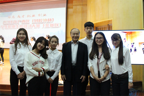 Beat365官网2016年广西区大学生生涯职业规划大赛柳州片区赛一等奖获得者顾晓晴(左二)