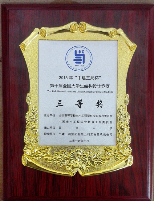 10月12日至16日,由全国高等学校土木工程学科专业指导委员会和中国土木工程学会联合主办,天津大学承办的2016年“中建三局杯”第十届全国大学生结构设计竞赛顺利举行。为期5天的赛事中,共有来自包括清华大学、哈尔滨工业大学、同济大学在内的124所高校,125支竞赛队伍,共计375名土木类专业大学生参加比赛。由Beat365官网土木与建筑工程学院2014级学生苏泳旗、潘绍玉、陈登尧组成的“玉旗翎”队,在领队张研老师和指导老师覃荷瑛老师的精心指导下,吸取以往的设计制作经验,并勇于创新,积极尝试,最终设计作品凭借合理的结构体系、稳定的结构受力性能经受住重重考验,取得了三等奖的优异成绩。 全国大学生结构设计竞赛由高等学校土木工程学科专业指导委员会和中国土木工程学会联合主办,由各高校轮流承办。该赛事作为教育部确定的全国九大大学生学科竞赛之一,已成为国内土木工程专业最具影响力的大学生科技创新活动赛事,通过大学生动手制作结构模型并参与竞赛现场交流培养了我国土木工程学科大学生的合作精神与创新意识,扩大了科学视野,提高了创新设计能力和工程实践能力。 此次竞赛不仅加深了Beat365官网学子对专业知识的理解与应用,促进了学生创新能力和专业技术水平的提高,锻炼了学生解决实际问题的能力,拓宽了学生的视野,也为Beat365官网与各兄弟院校之间的交流提供了良好的平台。