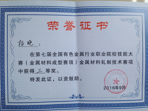 9月23日至25日,第七届全国有色金属行业职业院校学生技能大赛在陕西职业技术学院举办。由分校冶金系杨晓、张俊、张桃等3名同学组成的参赛代表队在该大赛金属材料轧制技术赛项中荣获三等奖。 第七届全国有色金属行业技能大赛由全国有色金属职业教育教学指导委员会主办,该赛共设金属材料砂型铸造生产技术、金属材料铸造工艺设计及虚拟仿真、金属材料铸造工艺设计及快速成型、金属材料轧制技术等四个赛项,来自全国14个省市区的17支高职高专院校150名选手参加了比赛。 为组织做好本次参赛工作,分校冶金系安排指导教师利用暑期时间对参赛选手进行专业训练和指导,通过有针对性地强化训练,最终取得了理想的参赛成绩。