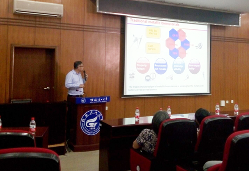 9月23日下午,应材料科学与工程学院、广西有色金属及特色材料加工省部共建国家重点实验培育基地邀请,北京大学郑玉峰教授在屏风校区9501学术报告厅作了题为“处在变革中的医用金属材料”的精彩学术报告。材料科学与工程学院相关专业师生参加了此次报告会。 郑玉峰教授首先从工程用镁合金、新型医用镁合金、表面改性镁合金和新颖结构镁合金4个方面综述了国际和国内生物可降解镁合金方面的研究现状,系统介绍了北京大学生物可降解金属材料课题组在可降解医用金属材料的合金设计、力学性能、体液腐蚀特性、细胞毒性和动物体内植入实验的相关研究成果。 郑玉峰教授的报告会内容丰富,资料详实,具有独到的学术观点,现场气氛活跃,让与会师生在学术研究方面收获颇丰,对相关领域的知识有了更深入的了解。
