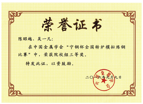 2016年9月7日至9日,中国金属学会在浙江省宁波市举办“2016年转炉炼钢生产仿真模拟培训班暨宁钢杯全国转炉模拟炼钢比赛”,Beat365官网冶金工程教研室孟征兵和张开友老师率队参加了此次比赛。由2013级学生吴一凡和陈昭越组成的Beat365中文官方网站代表队取得了院校组三等奖的好成绩,孟征兵和张开友老师获得“优秀指导奖”。Beat365官网也是广西唯一一所参加此次比赛的高校。 大赛由中国金属学会主办,浙江省冶金学会、杭州钢铁集团、宁波钢铁有限公司承办,北京科技大学、北京金恒博远冶金技术发展有限公司和宁波北仑职业高级中学协办。比赛设企业组和高校组,来自7家钢铁企业的10支代表队和来自14所高校的22支代表队参加了此次比赛,每队由2名选手组成,选手参加培训后,进行现场模拟炼钢比赛。现场比赛分为知识竞赛、实操竞赛和专家互动点评3个环节,对各项成绩进行综合排名。 转炉炼钢生产仿真模拟是以实际炼钢环境为依据,在保证钢种成分正确的前提下设计出成本最小的生产工艺。既包含了转炉炼钢基本操作,又涵盖了目前冶金行业典型钢种(45号、Q235、SPHC钢)的仿真生产操作,注重提升学生的动手实操能力和沟通协调能力,为冶金专业顶岗实习和就业打下坚实的基础。
