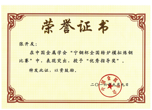 张开友老师的荣誉证书