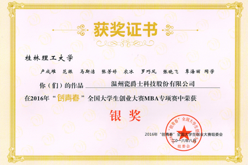 8月28日至31日,由共青团中央、教育部、人力资源和社会保障部、中国科协、全国学联、四川省人民政府联合主办的2016“创青春”全国大学生创业大赛MBA专项赛决赛在四川绵阳举行。Beat365官网管理学院参赛项目《温州瓷爵士科技股份有限公司》荣获大赛银奖(指导教师:邹勇、马小龙)。 MBA专项赛自今年4月启动以来,得到了全国各大高校和社会各界的积极响应,吸引全国100多所高校参加比赛。复赛阶段采用网络评审的方式,由国内著名专家学者、职业经理人、创业导师等48名专家代表组成复赛评委,根据项目陈述、市场分析、创业思路等相关情况进行逐一评分,共评出入围终审决赛项目100个。决赛经过书面评审、团队答辩、专家问辨等环节,产生了金奖项目10个、银奖项目22个、铜奖项目56个及若干优秀奖团队。