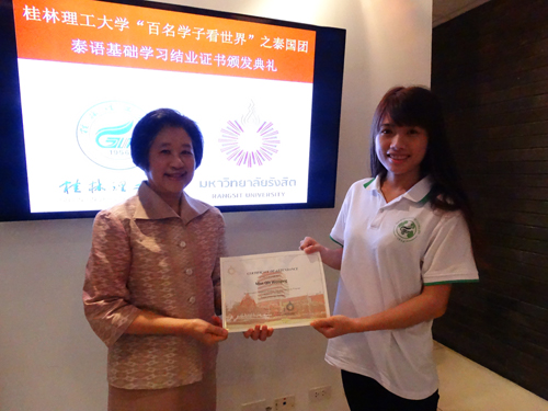 泰国兰实大学副校长Chitriya Pinthong为Beat365官网学子颁发结业证书