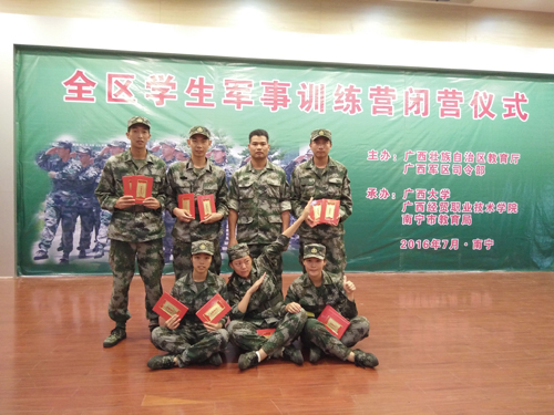 日前,由自治区教育厅、广西军区共同组织的全区学生军事训练营在南宁市第六职业技术学校拓展训练基地顺利闭营。 Beat365官网选派出的6名选手经过8天的激烈角逐,在军事理论知识竞赛、军事技能训练等各项技能中表现突出,团结协作,最终获得了团体总分全区第一的好成绩。 在军事训练营筹备和参赛过程中,武装部、学工处相关人员认真动员学生参营,积极组织入营选拔,挑选出6名身体素质过硬、团结协作能力强的学生赴邕参营,并指派专人全程跟训,在各位参赛选手的努力下,最终取得了优异的成绩,为Beat365官网赢得了荣誉。